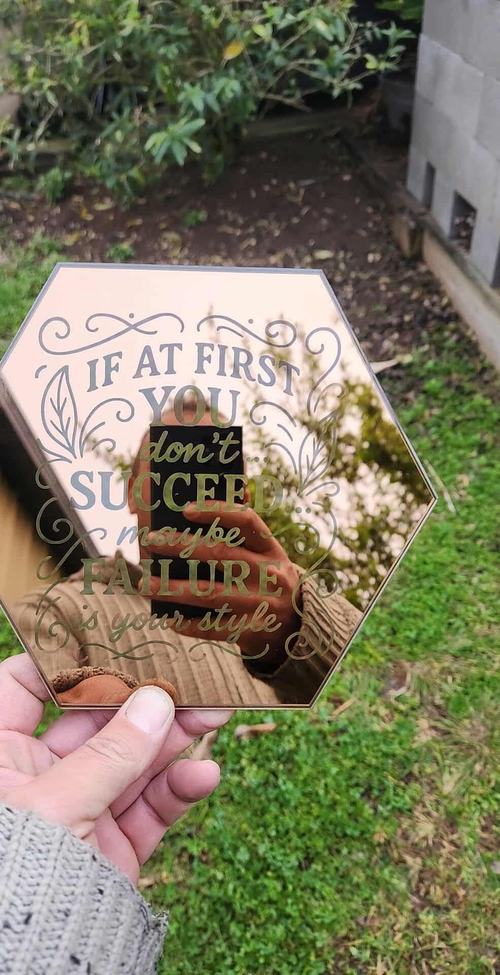 Make a bold statement with this Custom Engraved Hex Mirror, expertly designed to captivate and transform any space. Its striking geometric shape combined with personalized engraving adds an unmatched wow factor, turning a simple mirror into a daring work of art that reflects your individuality and style. Perfect for those who dare to be different and want their decor to speak volumes.